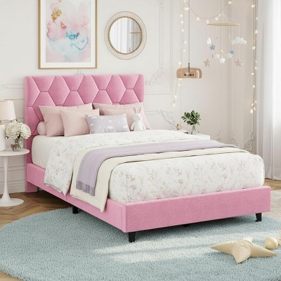 Twin XL Bed Frame for Kids, Heart Shaped Platform Bed with Headboard & Footboard, Heavy Metal Slat Support Noiseless No Box Spring Needed, Pink