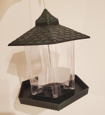 Really cute bird feeder. The hexagon shape and little roof look great hanging in the yard, and the green color blends in nicely. It feels sturdy, easy to fill, and the birds found it fast. Nice decorative piece that actually works well.