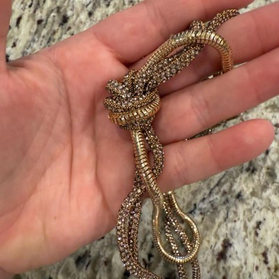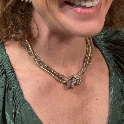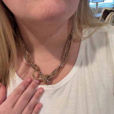 [This review was collected as part of a promotion.] I was obsessed with this knot necklace from the brand A new Day. It was actually a lot dressier than I thought it would be as it sparkled and hung just right on my neck. I wore it with a nice dress to the Nutcracker and it really made a statement. I think you could also wear it as a day-to-day piece just to add a little sparkle to your outfit. I will definitely be keeping this and wearing it as a staple in my wardrobe. Love the different metals combined together!