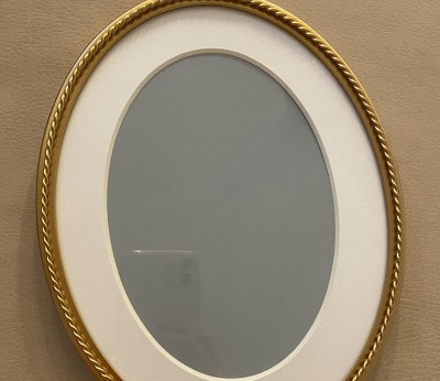 - Oval frame with twisted metal detail for a modern touch
