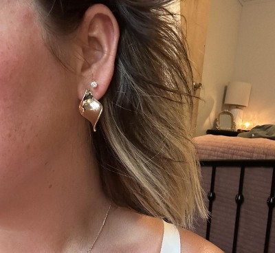 A: The earrings feature a twisted design, offering an eye-catching and unique style.