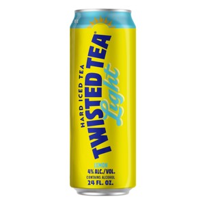 Twisted Tea Light is refreshingly smooth hard iced tea made with real brewed black tea and a twist of natural lemon flavor. Non-carbonated, naturally sweetened, and 4% ABV – it’s your favorite iced tea with a classic twist! Only 110 calories per 12oz. serving. Keep it Twisted all year long! Single, 24 fluid ounce can