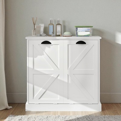Two-Compartment Tilt-Out Laundry Sorter Cabinet with Removable Bags