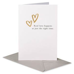 Wish the happy couple the best as they begin their life as a married couple with this sweet and heartfelt Wedding card. The simple, clean design features a cute pair of hearts on the front rendered in shimmering gold foil, with a message that is upbeat and excited for the newlyweds. Whether it’s their first marriage, or they’ve found their person later in life, this wedding card wishes them all the happiness for a joyful future together! A matching envelope is included.