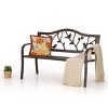 [CAPTIVA DESIGNS]Transform your outdoor space with our elegant and durable garden bench, designed to blend seamlessly into your garden, patio, or backyard. Crafted from sturdy steel, this bench offers reliable, long-lasting support, while the intricate bird pattern on the backrest adds a touch of charm and sophistication. Whether you're enjoying a quiet moment in your garden or relaxing with friends on your deck, this bench provides the perfect spot to unwind and admire your hard work. Simple, beautiful, and built to last—this is the outdoor furniture you’ve been looking for.
