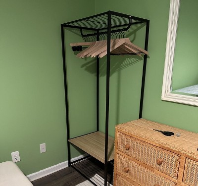 Two Shelf Wardrobe Black Metal with Natural Wood - Brightroom™