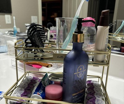 Two Tier Large Vanity Tower Satin Gold - Home Details: Steel Bathroom Organizer, Perfume Display Tray