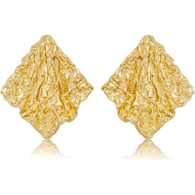 - Elevate your style with our gold hammered square stud earrings. Featuring a unique hammered texture, these earrings exude vintage charm and modern sophistication, perfect for making a statement.