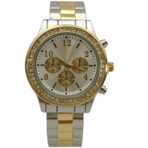 Product Name: Two Tone Rhinestone Bezel Chronograph Bangle Watch