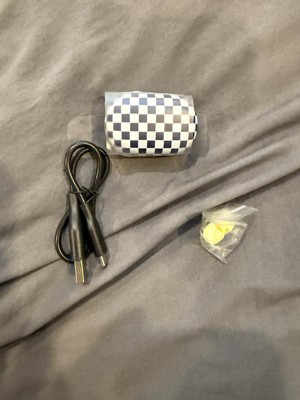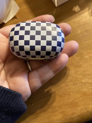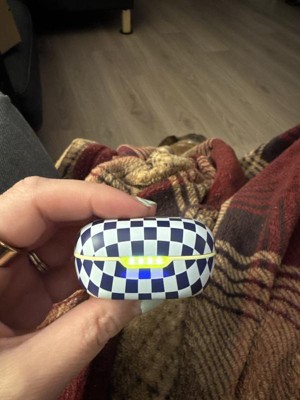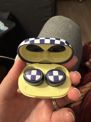 I love these! Super good sound quality. They are really small, the case, everything. Might be easy to lose, but so far so good. I have dropped them a couple times, and they still work perfectly. I absolutely love the color and checkered pattern. Great gift idea!