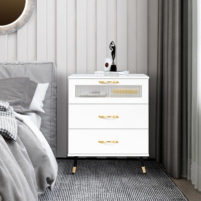 TYBOATLE Nightstand Small Dresser, Modern Black 3 Drawers Nightstand, Wooden Storage Dresser with Faux Leather Finish,Black