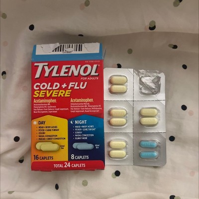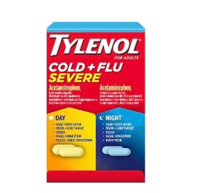 - Tylenol Cold + Flu Severe Day/Night Caplets for cold and flu symptom relief