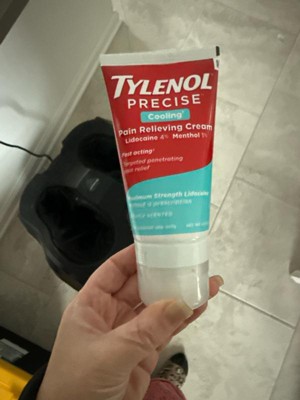 Tylenol Precise Cooling Pain Relieving Cream provides penetrating pain relief to help numb minor joint and muscle soreness. Formulated with maximum strength combination of lidocaine and menthol without a prescription for pain relief, this pain relieving cream targets pain receptor nerves to block pain signals and provide relief from muscle aches and pains. This topical analgesic is ideal for use on the back and shoulders, legs and hips, knees, elbows and ankles, and other small joints. The fast-absorbing, non-sticky cream is lightly scented and won't leave any residue behind on skin or clothes. To use, adults and children 12 and older should apply the pain relief cream to affected areas no more than three to four times daily. Key Ingredients: Lidocaine: Topical analgesic Menthol: Topical analgesic How to Use: Does not contain acetaminophen Use only as directed Adults and children 12 years of age and older: Apply to affected area not more than 3 to 4 times daily Children under 12 years of age: Ask a doctor Brand Story: TYLENOL® – The #1 doctor recommend brand of pain and fever relief – provides families with a variety of OTC pain relief products to relieve discomfort from minor aches and pains. TYLENOL® is driven to provide Care Without Limits to address the pain needs across ages and pain types through every stage of life.
