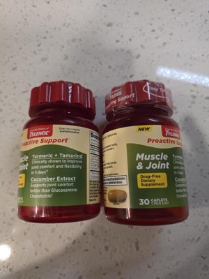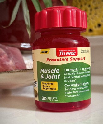 Support joint comfort & flexibility* with Proactive Support* Muscle & Joint dietary supplements from the makers of Tylenol. These drug-free supplements for men & women have been developed with doctors & contain science-backed ingredients including turmeric & tamarind, which promotes your body's healthy inflammatory response to active lifestyles* & are clinically shown to improve joint comfort & flexibility in 5 days*. They contain cucumber extract, which is better at supporting joint comfort than glucosamine chondroitin*. Joint comfort support* is based on 2 clinical trials where users rated their joint function over time.