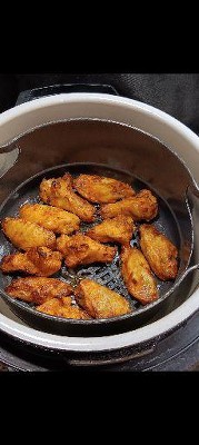 - Fully cooked chicken wings coated in hot and tangy sauce