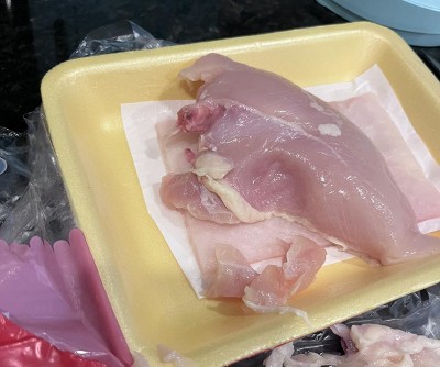 One of the breasts seamed spoiled. The meat was stringy and felt raw even though it was cooked thoroughly