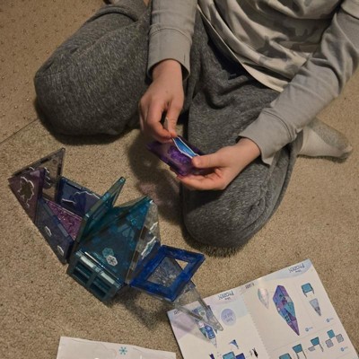 [This review was collected as part of a promotion.] I bought this for my five year old son who enjoys the Frozen movies. He thought it was a nice set of tiles. I love that the set comes in a nice box, but also includes a storage bag. The building instructions were clear and easy for my son to follow. The tiles are a nice quality and work well with the other Magnatiles we have at home. My son has been having fun playing with them. I particularly like the glitter accents in some of the pieces. Very pretty tile set! I received an incentive to write this review.