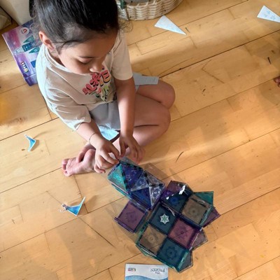 [This review was collected as part of a promotion.] This is a great toy for preschoolers. The colors are bright and attractive. Some of the tiles have glitter and that’s the one that attracts kids the most. This is a great play in small group toys. You can use the manual to build the design on the box or let your imagination run wild with many self created items. There are so many tiles so you can spend hours playing and building. I received an incentive to write this review.