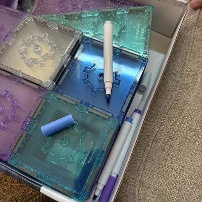 [This review was collected as part of a promotion.] Disappointed to find that all three markers arrived uncapped inside the box, which means they’re completely dried out and didn’t work at all. The reusable stickers were a pleasant surprise, they’re thick with an almost gel like backing allowing them to easily stick to the tiles without leaving residue behind. The workbook was cute, my kids liked that it shows how to build multiple things: the castle, a bridge, a sleigh, and more. I think my favorite part is the glitter tiles, the sparkle looked so cute when we built the castle. Overall, the magnetic tiles feel high quality, definitely comparable to other nice brands we own. I just wish the markers had been packaged properly so we could try the dry erase decals. I received an incentive to write this review.