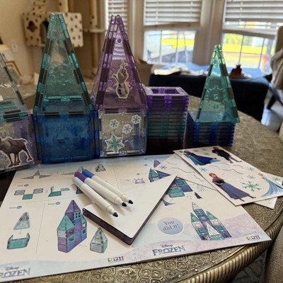 [This review was collected as part of a promotion.] These magnetic tiles are a very cute set for my daughter! Although she is not a true Frozen fan, she loved the colors and how sparkly some of the tiles were! These are compatible with my other brand magnetic tiles, and are very good quality. We liked the idea of the dry erase magnets, but 2 of the 3 markers included in the set were dried out. We did not use the stickers for this set, but we plan on using them for other crafts. The stickers are reusable on the set of magnetic tiles, and appear to be well made (not the cheap stickers). I recommend this set. It’s fun for both kids and adults! The instructions for building the castle were easy to follow for my 4 year old and I. I received an incentive to write this review.