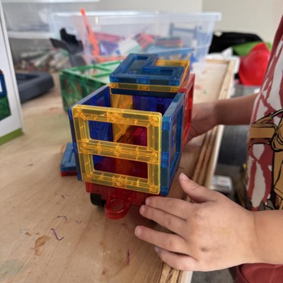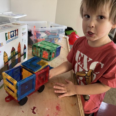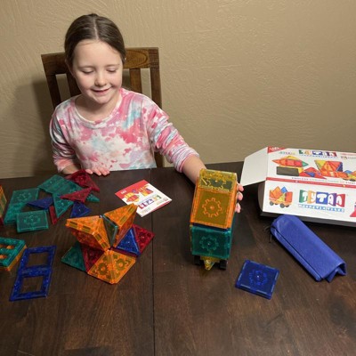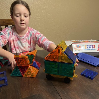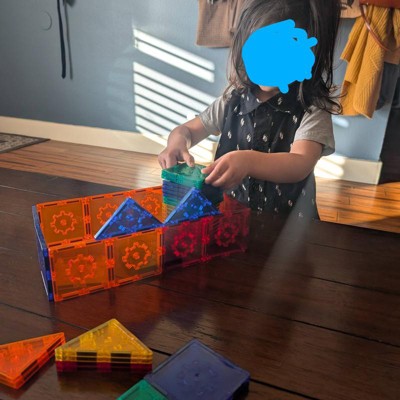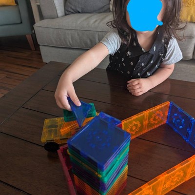[This review was collected as part of a promotion.] I always love the magnetic tile set that do not have any directions included with them. This set encourages open creativity and find motor skills. This is 100 piece set and anything can be built with all the choices. I especially liked how it came in a hard cardboard box and a mesh bag just to wear everything in. It states it is doable for ages of three and up and I think that’s very appropriate. I received an incentive to write this review.