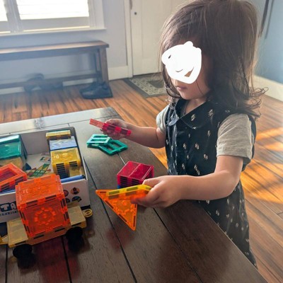 [This review was collected as part of a promotion.] This is by far my favorite set of magnetic tiles. I always like when kids can get creative and build whatever they want and this set of 120 pieces allows you to do that. The back states that it’s appropriate for ages three and up and I definitely agree. The tiles are strong, magnetic and sturdy. I especially like that they come solid in a cardboard box but also with an additional bag to put them in and store them all in one place. I received an incentive to write this review.
