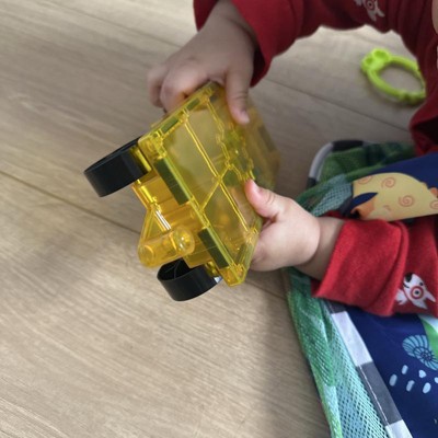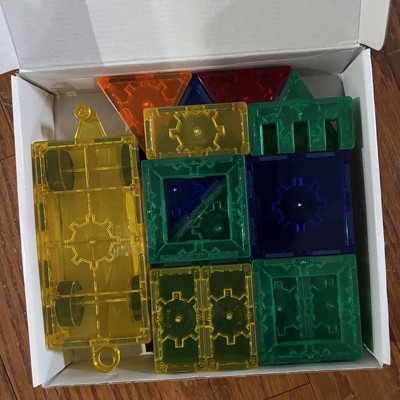 [This review was collected as part of a promotion.] I purchased this set of magnetic building blocks for my family. This box comes with an assortment of primary colored plastic tiles that are easy to build and stack together. They snap right in place and are easy for young kids to use. This set includes over 60 magnetic pieces. It also includes a car base with wheels, and a convenient bag for storing pieces. The price for this set is a very good value. This is a great set on its own, or to add to another college building blocks or tiles. Great for developmental play, or just mindless building. Fun for all ages! I received an incentive to write this review.