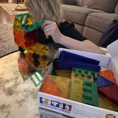 [This review was collected as part of a promotion.] These Tytan tiles are fantastic! My niece loves magnetic tiles and these became her new favorite with all the different shapes and fun, bright colors she was able to build so many cool structures and designs. I think that this is well worth the money, as you get 60 actual pieces and a carrying bag as well to make it easier for traveling and storing. These tiles are so versatile and are great for helping kids not only build hand-eye coordination and fine motor skills, but amazing creativity as well. My niece made a car, and then a water bottle “transporter”, a boat, a house, and then a little village. Very smart toy to add to your rotation! Great for all ages to build practical, foundational skills in a really fun way. I received an incentive to write this review.