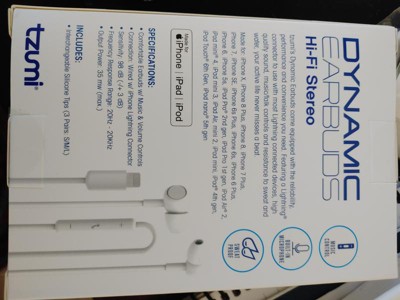 * Featuring a sleek metallic build, dynamic Hi-Fi sound, and 3.9 foot cable * MFi certified-compatible with the majority of Lightning/Apple devices * In-ear design and three included silicone tips (S, M, L) * Resistant to water and/or sweat, so you can have a worry-free work out or jog * Built in microphone, audio play back and voice controls-play, pause, volume up/ down, previous/next track
