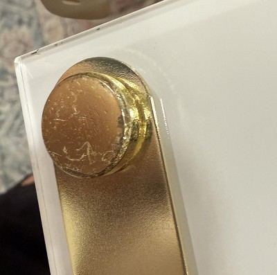 Very classy calendar; I love the way the gold accents match my workspace. If you're wondering whether the " team" color has a hint of rose gold -- it does. The slightest hint of rose/coral in the color. The gold is not scratched like other reviewers mentioned. I lean mine against the wall, so no installation needed for my purposes. Very cute and functional. I recommend.