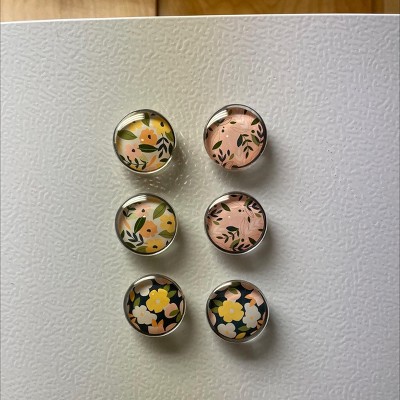 U Brands 6ct Round Glass Magnets - Precious Petals: Strong Fridge & Locker Accessories, Multi-Colored, 600Gs Capacity