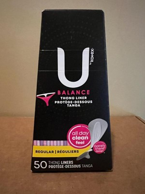 Spend your days feeling fresh with the U by Kotex Balance Daily Thong Liners, designed for you and your thong underwear! Perfect for backup period protection or everyday use on light days, U by Kotex panty liners absorb quickly for an everyday fresh feel. They deliver outstanding skin comfort, thanks to a BarelyThere design that fits and flexes with your body. Each panty liner is made with thin and super flexible material that moves with you, so you'll barely know it's even there! Not only that, but these thong panty liners have a breathable soft touch cover just for your comfort. These panty liners for women are dermatologist-tested to be gentle on skin and made with no harsh ingredients, fragrances, lotions, pesticides, elemental chlorine and natural rubber latex. Plus, these liners come individually wrapped, so you can take them on-the-go! For reliable period protection on heavier days, try U by Kotex Balance Ultra Thin Pads. U by Kotex feminine products are FSA/HSA/HRA-eligible in the US. Packaging may vary from images shown. (*breathable top sheet)