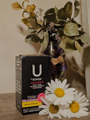 The U by Kotex Balance Wrapped Liners are designed for you! Whether you're looking for backup period protection or everyday use on your light days, the U by Kotex unique Xpress Dri core offers you a clean, dry feeling. These liners are 2x more absorbent* than our Balance Daily Liners and feature channels that help stop leaks. Plus, U by Kotex Balance Liners are designed for your comfort and are soft, thanks to a breathable**, cottony soft-touch cover. These panty liners for women are dermatologist-tested, made with no harsh ingredients and free of fragrances, lotions, pesticides, elemental chlorine and natural rubber latex. The U by Kotex Balance period liners also conveniently come individually wrapped for easy use on the go! For reliable period protection on heavier days, try the U by Kotex Balance Ultra Thin Pads. U by Kotex feminine products are FSA/HSA/HRA-eligible in the US. Packaging may vary from images shown. (*Compared to U by Kotex Balance Daily Liners) (**breathable top sheet)