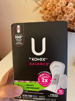 Get the period pad that is designed for long-lasting protection with U by Kotex Balance Ultra Thin Pads with Wings. Each heavy absorbency feminine pad comes with a raised center that absorbs 2x faster.* The raised center absorbs quickly for up to 100% leak free protection and helps to lock away blood, sweat and odor. On top of that, our menstrual pads are dermatologist tested to be gentle on skin. These pads are made without fragrance, lotions, pesticides, parabens, elemental chlorine and natural rubber latex. Designed to fit your body’s curves, our heavy absorbency pads with wings help eliminate gaps and prevent leaks while providing outstanding skin comfort to help you get through your day even when you are experiencing heavier flows. Each sanitary pad is individually folded and wrapped to protect your pad with easy access, even on-the-go. For overnight protection in any sleep position, try U by Kotex Balance Ultra Thin Overnight Pads. U by Kotex feminine pads are FSA/HSA/HRA-eligible in the US. Packaging may vary from images shown. )(*vs. the leading unscented foam pad)