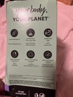 [This review was collected as part of a promotion.] This 80 liner pack with extra coverage definitely last longer. I also appreciate the reduction of plastic use by not being wrapped. This one is significantly bigger than the regular liners while still maintaining the same thickness. It is also fragrance free, which supports well-being.