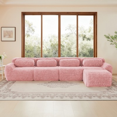 U-shaped Boneless Sofa,32D HD Sponge,Anti-Slip Bottom,With Chaise,Free Combination,Vacuum Packaging,Deep Seat for Bedroom/Study/Home Theater,Pink
