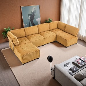 - Adaptable Modular Design Redefine your living space with this 6-piece modular sectional sofa, easily arranged into a cozy sofa bed, L-shaped, or U-shaped layout. Its chic design and range of colors elevate your interior decor.