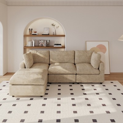 U Shaped Sectional Couch 134 Inch 4-Seater Modern Modular Sofa with 2 Ottoman,Chenille Deep Seat Couches for Living Room, Bedroom and Apartment£¬Khaki