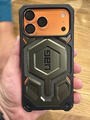 [This review was collected as part of a promotion.] The olive green UAG Monarch Pro for my iPhone 17 pro max in cosmic orange makes a great alliance. My phone and case stands at attention. It is ready to handle anything.