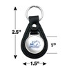 - QUALITY MATERIAL: Our durable round keychain is crafted from leather with a glossy resin-topped emblem featured design shown on one side. Approximately 1.5" (3.8cm) x 2.5" (6.4cm) in overall size, emblem is 1" (2.5cm)..