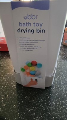 - Keep your bath toys organized and make bathtime a breeze with Ubbi’s Bath Toy Drying Bin. This freestanding bathtub caddy features 2-part bin and base design with large draining holes to ensure fast drying and tidy storage.