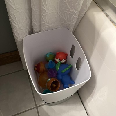 [This review was collected as part of a promotion.] I never thought this thing would become a must have item for us in our bathroom until we tried one. It keeps the toys neat and dry avoiding the nasty stuff that accumulates in wet toys/objects. It’s just a good way to keep small toys in one place. The size of this bin is big enough to hold all my kids toys they use in the tub. Highly recommend you get one of this.