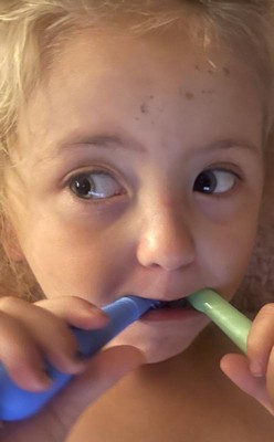 [This review was collected as part of a promotion.] These make introducing to brushing your teeth fun. Easy for them to hold onto and use. My youngest is enjoying using this to brush her two little teeth. It will help introduce her to actually brushing.