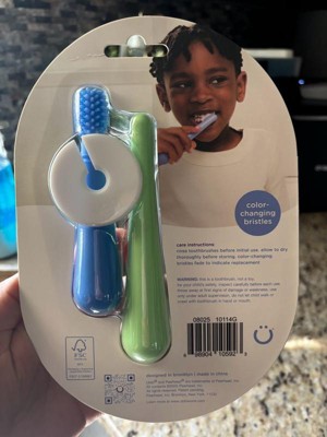 - Toddler Toothbrush: Perfect for toothbrush training, the beginner toothbrush is ideal for toddlers transitioning to independent brushing. This kid’s toothbrush is made for small hands with ultra-soft, color-changing bristles that signal when it’s time for a replacement.