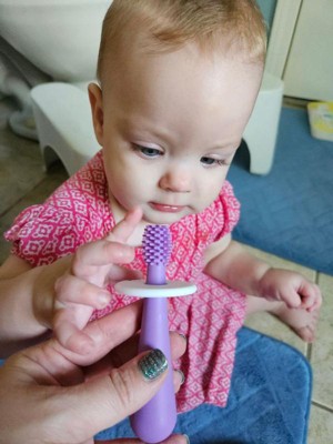 - Stage 1 Finger Toothbrush: This infant silicone teether toothbrush is great first toothbrush for teething babies. Made with 100% platinum silicone and 360-degree silicone bristles to soothe sore gums. Complete with a travel-friendly case for hygienic storage.