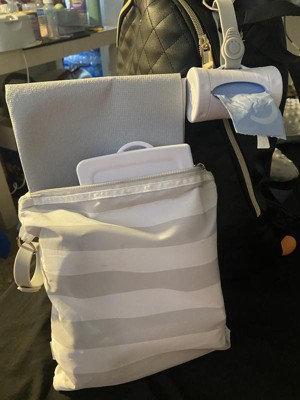 [This review was collected as part of a promotion.] I love that you have everything you need when you're on the go with your baby. When I'm out and about with my son I like that I have all the on-the-go necessities like a changing mat + bag, wipes dispenser, and bag dispenser. I like that with the mat bag you can put a few diapers and other small things like your phone or keys.