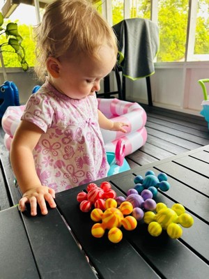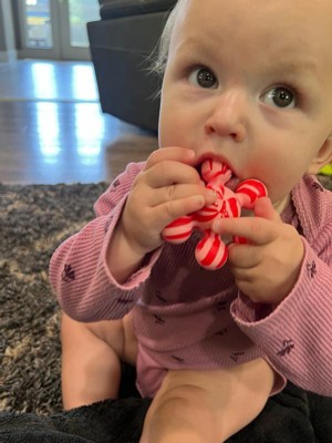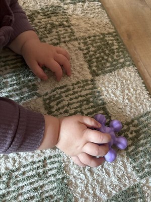 [This review was collected as part of a promotion.] My son loves these cute and colorful teething toys! He can play with them by connecting them and also safely put them in his mouth as a teether. The rounded shape makes them easy for his little hands to grab. He loves tossing them around and it’s a great bath time toy as well!