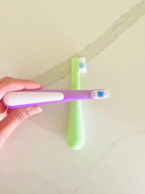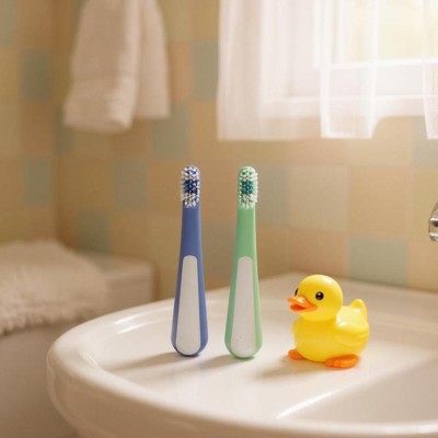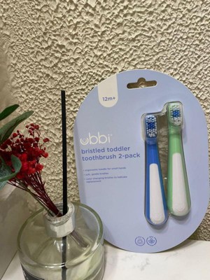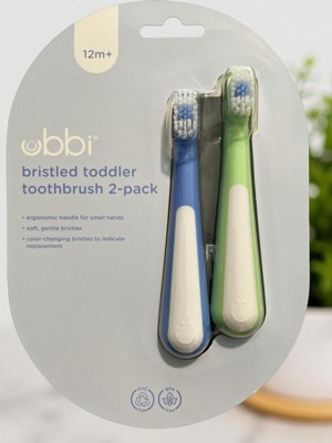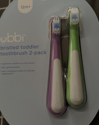 [This review was collected as part of a promotion.] The Ubbi Bristled Toddler Toothbrush two-pack is a practical option for parents looking for a simple and effective brush. Its compact size is well-suited for a toddler's small mouth, making the brushing experience less daunting for little ones. The bristles are soft, which is crucial for protecting delicate gums and emerging teeth, ensuring a gentle clean every time. A notable feature is the color-changing bristles, which fade after about three months of use, signaling that it's time for a replacement. This is a helpful visual reminder for busy parents to maintain good oral hygiene habits and replace the brush when its effectiveness might decline. While the overall design is straightforward, its functionality excels at its primary purpose: gentle and timely cleaning. In terms of value, the two-pack offers good utility for its price, providing a spare brush or a convenient option for travel. For parents who prefer a no-frills, dependable toothbrush that encourages regular replacement, the Ubbi Bristled Toddler Toothbrush is a solid choice. It prioritizes effective cleaning and practical design over elaborate features.