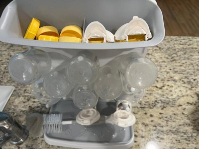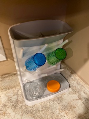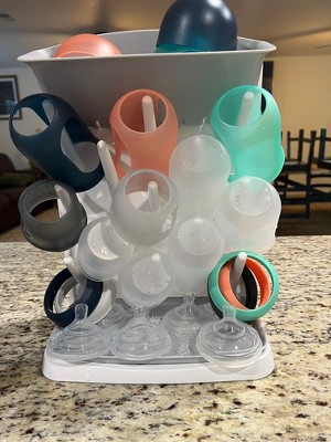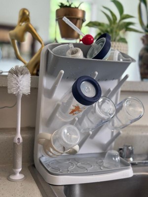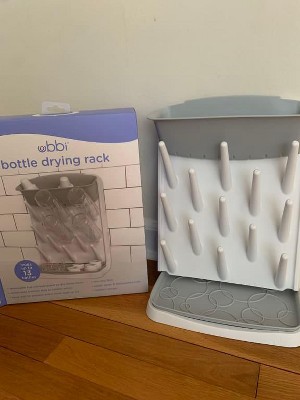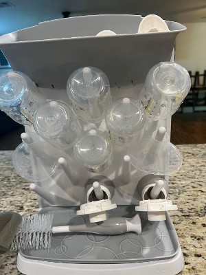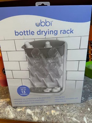 The Ubbi Vertical Baby Bottle Drying Rack is an essential baby item for new parents, offering 13 pegs to dry bottles, pump parts, and baby accessories. Its sturdy, non-slip design holds bottles of all sizes, including glass bottles, while saving countertop space. A removable top compartment dries small items like pacifiers, valves, lids, and nipples, and a bottom tray collects water to keep the counter dry and tidy. Dishwasher-safe for easy cleaning, it comes in sleek, neutral colors that add a trendy touch to any kitchen decor. Compact and modern, the Ubbi infant bottle drying rack is perfect for baby registries or as a thoughtful gift for new or expecting parents.