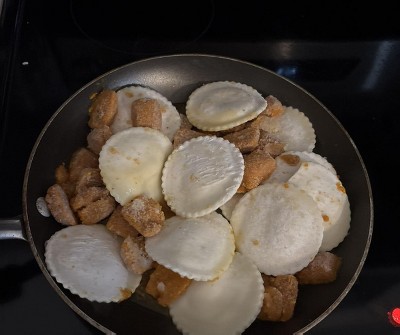 I almost didn't buy them because half the bag had 30-something percent of your sodium for the day, but I figured I'd eat half and save half for leftovers. Then I opened the package - and there were a grand total of 12 raviolis in the bag. The whole bag is not enough for a dinner - with 80-something percent of your sodium for the day and over 800 calories. The sauce tastes like nacho cheese from the ballpark and I couldn't eat it. I pretty much scraped it off. Will never buy again.